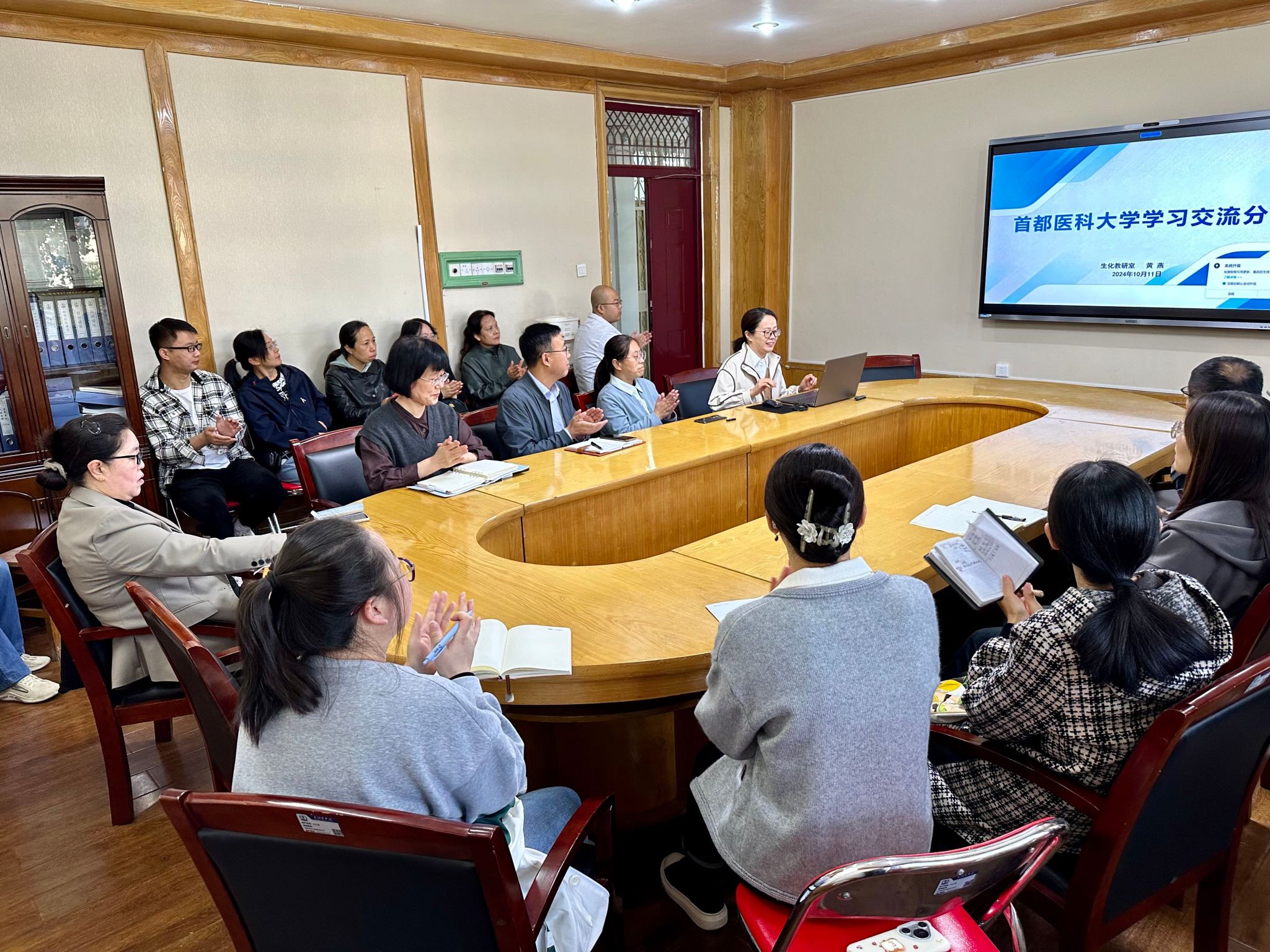 为了进一步落实全国教育大会精神,优化实验室管理体系,实现学习资源共享,分享先进的实验室管理理念与教学方法,营造浓厚的学习风气和学术氛围,基础医学部于11月1日下午举办了首都医科大学实验室短期学习交流分享汇报会,实验室主任黄燕、于娟和陈小荣对进修学习内容进行了汇报,基础医学部主任张毅强出席并讲话,各个教研室主任及青年教师参加。