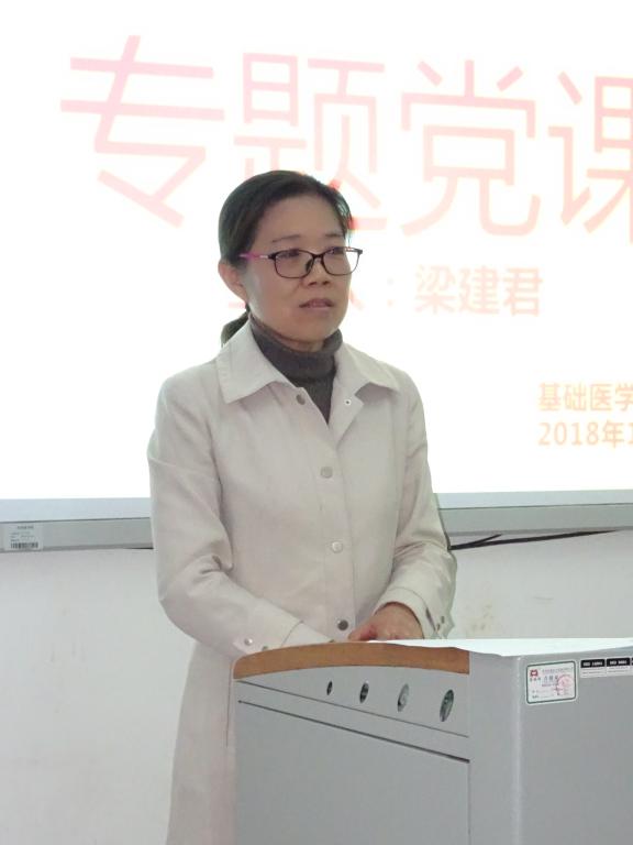 10月25日下午,为了全面贯彻落实省委关于全面推进“三基建设”的实施方案的精神,基础医学部在机能实验室举行了“三基建设”系列讲座之一,题为《以习近平重要讲话为统领,全面推进三基建设》专题讲座。基础医学部党支部书记、支部委员、全体辅导员、预备党员、入党积极分子参加了讲座,主讲人基础医学部党总支梁建君书记。