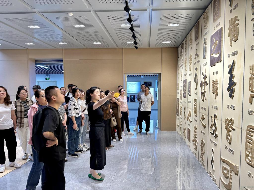 李育平馆长亲自带领老师们,深入探索了图书馆的各个角落。专门负责讲解的苏煜婧老师详细介绍了每个楼层可以实现的功能,包括研究区、自习室、电子资源区等,展示了图书馆为教师和员工提供的多样化学习和研究场所。