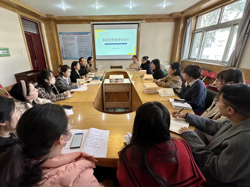 会上2019级辅导员王微微汇报考研就业情况,基础医学部分团委副书记李秀萍汇报英语四六级情况,各班导师汇报近期学业指导及开展的工作情况,辅导员汇报近期员工工作情况。全体参会人员围绕班级学情、员工心理健康状况等,讨论了本学期员工工作中遇到的部分共性问题,通过商讨交流,制定了切实可行的解决方案。