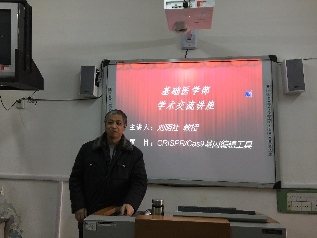 12月15日下午3点,基础医学部在机能第六实验室进行了题为“CRISPR/Cas9基因编辑工具”的讲座。讲座由人体寄生虫教研室主任刘明社教授主讲,基础医学部副主任冀菁荃副教授主持,来自基础医学部及药学系的40余位老师参加了此次讲座。