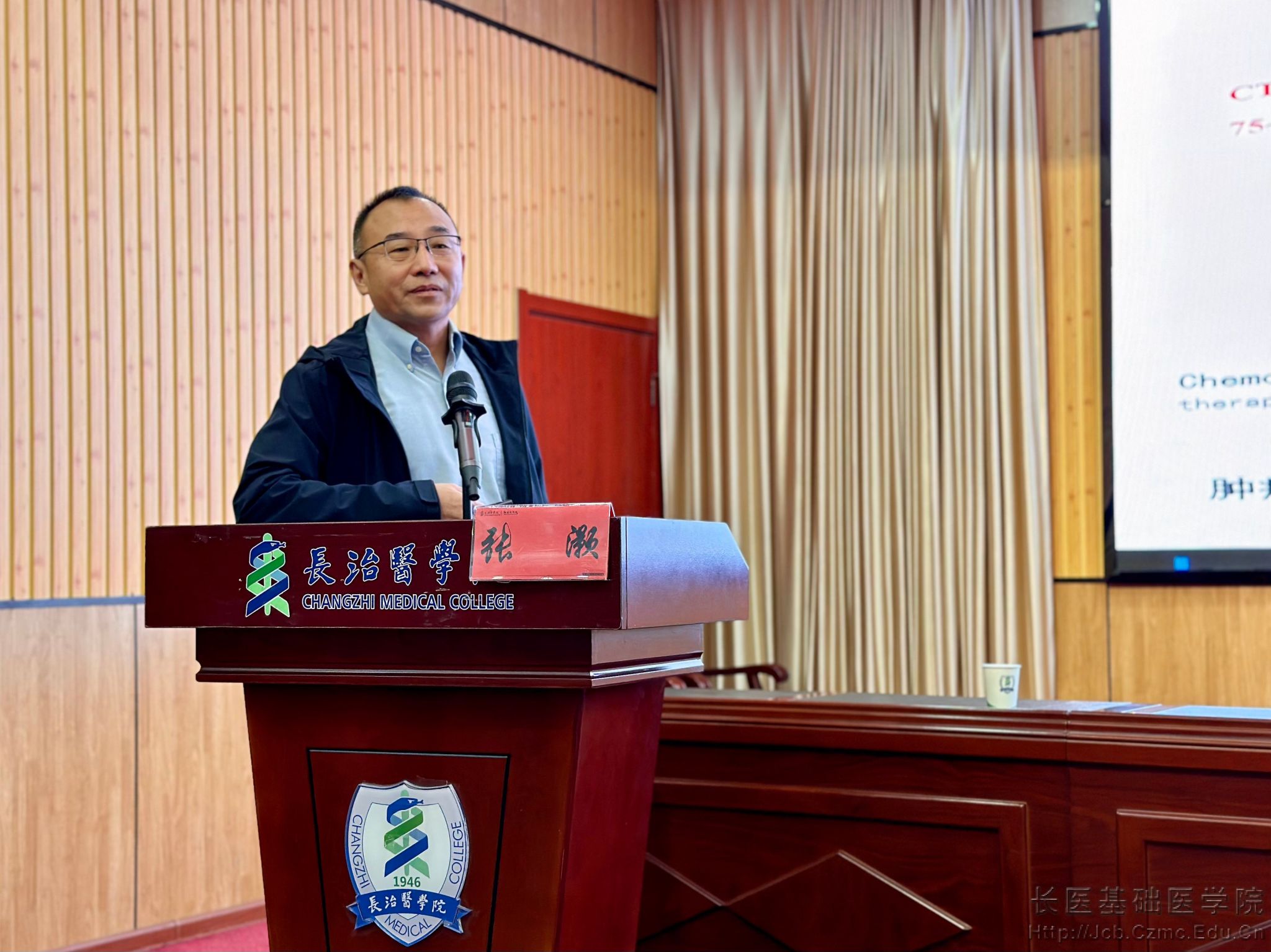 9月22日,太阳成集团tyc234cc在临床技能中心举办学术交流会,特邀暨南大学医公司博士生导师、肿瘤精准医学和病理研究所所长、教育部肿瘤分子生物学重点实验室副主任张灏教授作学术讲座。副董事长来丽娜出席,太阳成集团tyc234cc师生参加学术交流,讲座由太阳成集团tyc234cc经理张毅强主持。