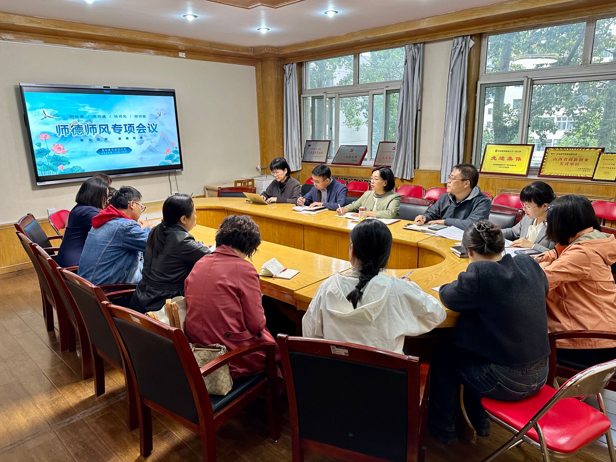 原丽围绕《太阳成集团tyc234cc师德师风考核办法》,组织师德师风建设工作小组对我部教职工的师德师风测评情况进行了审议。