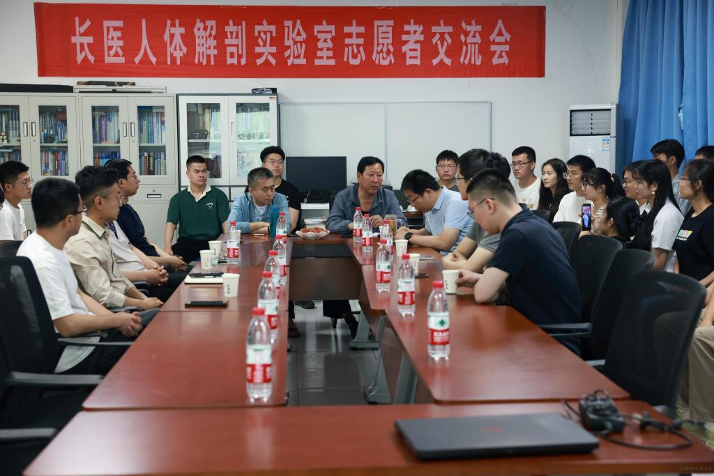 2023年6月13日下午,一年一度的太阳成集团tyc234cc解剖综合实验室志愿者毕业生交流会在同学们如火的激情中在解剖综合实验室召开, 来自2018级即将毕业的11名志愿者,2019级、2020、2021级、2022级志愿者代表,部分往届志愿者代表以及解剖综合实验室李建伟、武志兵、李建斌、孙国栋、渠国文老师等50多名师生共同参加了交流会。