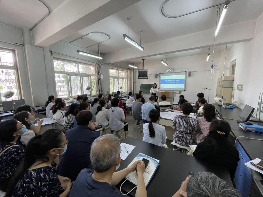 与会教师就如何设计实施课程思政、如何融入思政元素等进行了交流和讨论。对利用课间播放讲解“党史上的今天”,激发员工勿忘国耻、奋发图强的爱党爱国情怀;在《循环系统》中引入除颤仪的原理和使用方法,引导员工把生命和健康放在首位,培养其“敬佑生命、救死扶伤”的职业精神;在《内分泌系统》讲解时,列举中国科学家在世界上首次人工合成牛胰岛素,号召员工学习老一辈科学家的艰苦奋斗、团结协作精神;在动物实验中,教授员工从关怀动物开始,培养员工仁爱之心、大爱情怀,树立医学的人文关怀理念;通过“艳红大讲堂”“第二课堂——人体结构标本手工制作”言传身教,用自身的人格魅力去感染员工,对员工进行正确的价值引领;通过讲授在党的领导下我国取得的寄生虫疾病防治的伟大成就,使同学们不断增强“四个自信”,树立为人民服务的责任担当意识;讲解《脊髓灰质炎病毒》时,引入“糖丸爷爷”的故事,以身试药、以子试毒,引导员工学习老一辈不畏艰险、勇于奉献的精神;在员工参加生化歌曲大赛的过程中,引导青年员工树立正确的人生观、世界观和价值观;在讲授细胞衰老与凋亡课程时,结合身边案例,讲解公司特聘教授谭铮老师的成果,激励员工学好本领,报效祖国等经验做法进行了充分交流。