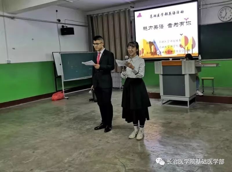 为激发并提高我系员工对英语的学习兴趣,帮助我系员工养成良好的学习习惯,丰富同学们的课余生活,同时增加同学们的沟通和交流。基础医学部于11月3日晚七点举行2019年英语系列活动第一期Charm English, sound for you “魅力英语 音为有你”。
