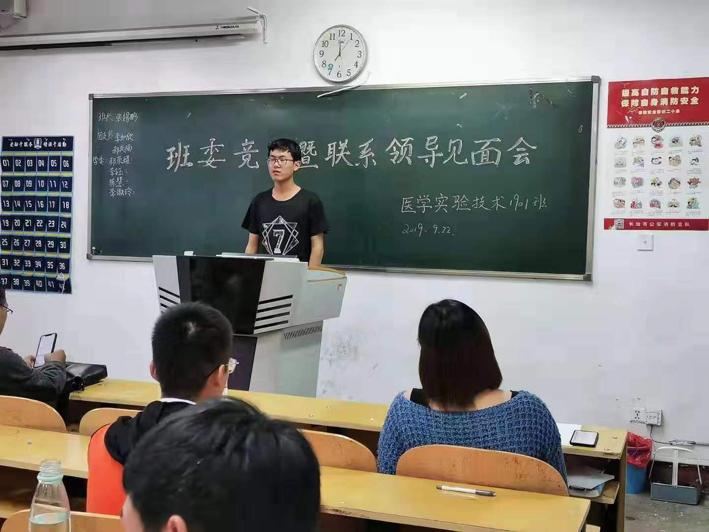 在紧张忙碌的军训过后,为团结全班同学共同进步,使班级相关活动有序、有效地开展,更好地加强班级凝聚力,实验1901班于2019年9月22日下午在北区24教开展了医学实验技术1901班联系领导见面暨班委竞选会。参与人员有基础医学部副主任张雄鹰教授,基础医学部分团委书记、16级辅导员李明老师,17、18、19级辅导员李秀萍老师以及19级全体同学。