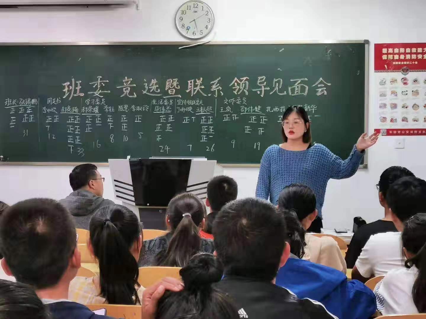 竞选结束后,李明老师向大家说明了班委竞选中同学们出现的问题,让同学们明白提高自身素养的重要性,同时还告诫大家在学习方面不能松懈。