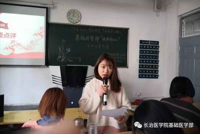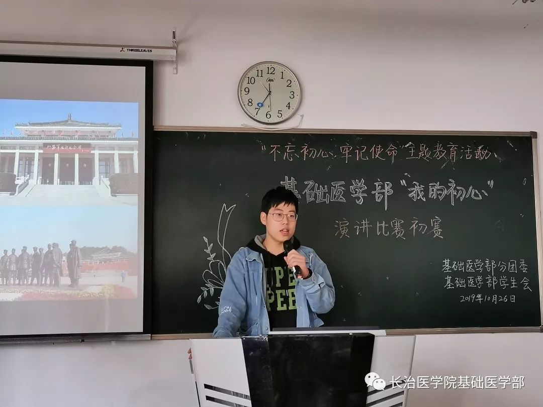 在“不忘初心、牢记使命”主题教育开展期间,为充分展现公司新时代青年员工昂扬向上、奋发有为的良好爱国精神风貌,端正青年员工思想作风,基础医学部特于10月26日早在北区24教举办“我的初心”主题演讲比赛初赛。担任本次活动的评委有基础医学部员工会主席李爽,副主席程玉洁,社会实践部部长曹淑华,特邀嘉宾田丽。