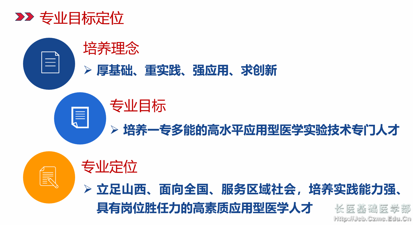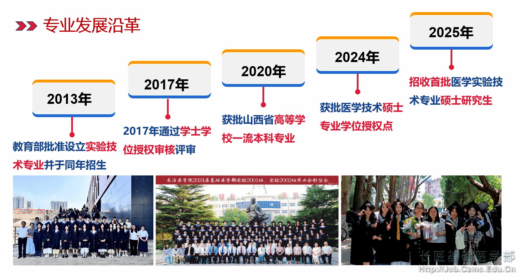 医学实验技术专业于2013年经教育部批准并开始招生,旨在培养具有良好思想道德和人文素养,适应医学和生命科学发展需要,掌握基础医学和临床医学相关的基本理论和基本知识,熟练掌握医学基本实验技术,具有良好职业素养,有较强的实践能力和创新意识,岗位胜任力强,能在各级医疗机构、医药企业、医药高等院校和科研院所从事医学实验技术、实验室管理和医学研究的应用型医学实验专门人才。2020年获批“山西省省级一流本科专业建设点”。2024年获批“医学技术硕士学位授权点”。