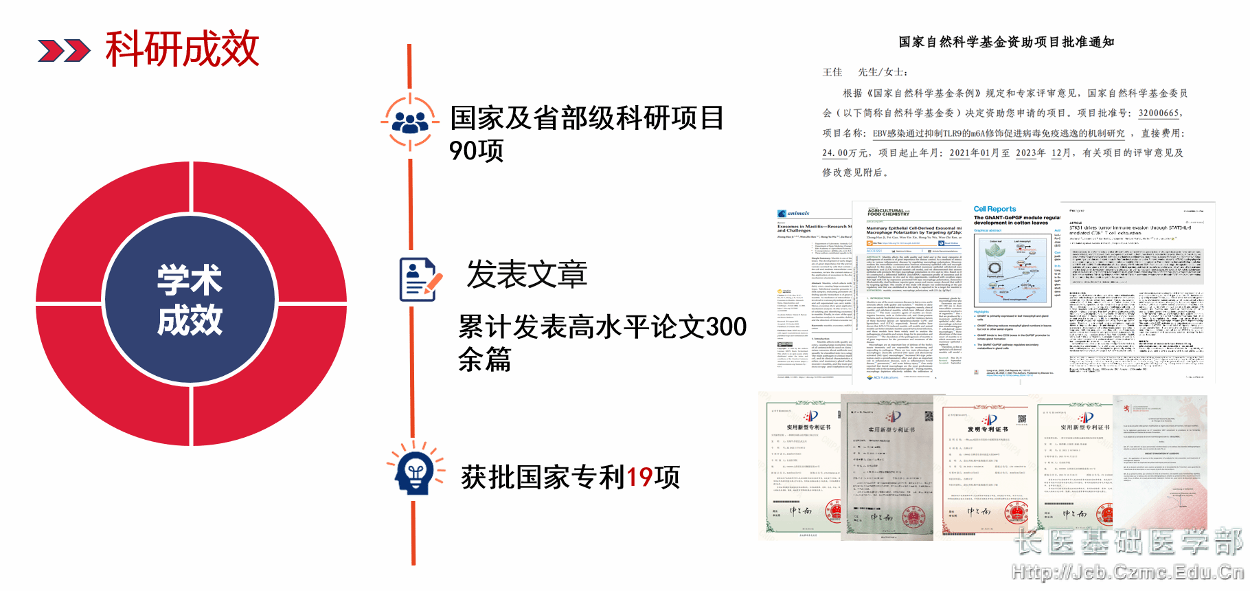 太阳成集团tyc234cc现已形成消化系统疾病发病机制及干预研究、感染性疾病的基础和临床研究、神经精神系统疾病的基础研究及干预策略、衰老机制研究与转化应用等几个稳定的研究方向。近年来,承担国家级及省级以上项目90余项,发表高水平学术论文300余篇,其中SCI收录100余篇,部分发表在Cell Reports、Immunity、Oncogene上;山西省科技进步奖3项,授权专利30余项;获得省级以上教改成果奖10项,获得省级以上教改项目40余项;主编、参编各级各类规划教材120余部;指导员工参加各类竞赛,获奖100余项。
