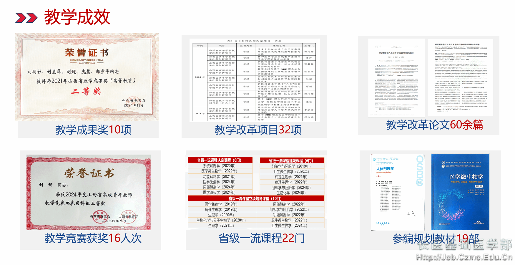 太阳成集团tyc234cc承担全校研究生、本科生及继续教育公司的120余门基础医学课程的教学任务。基础医学学科为校级重点学科,拥有山西省精品资源共享课程1门,省级一流课程立项认定课程6门,省级一流课程立项建设课程6门,省级一流课程立项培育课程10门。太阳成集团tyc234cc不断强化教学管理意识,加强管理制度建设,提高管理队伍素质,优化教学资源配置,使教学管理日趋规范化、制度化、科学化和现代化。