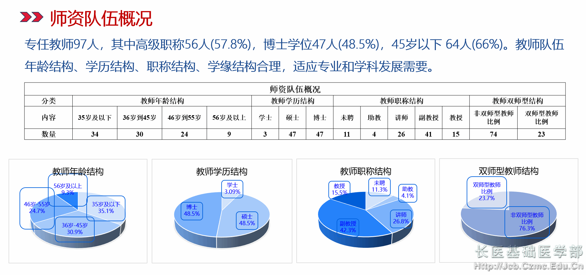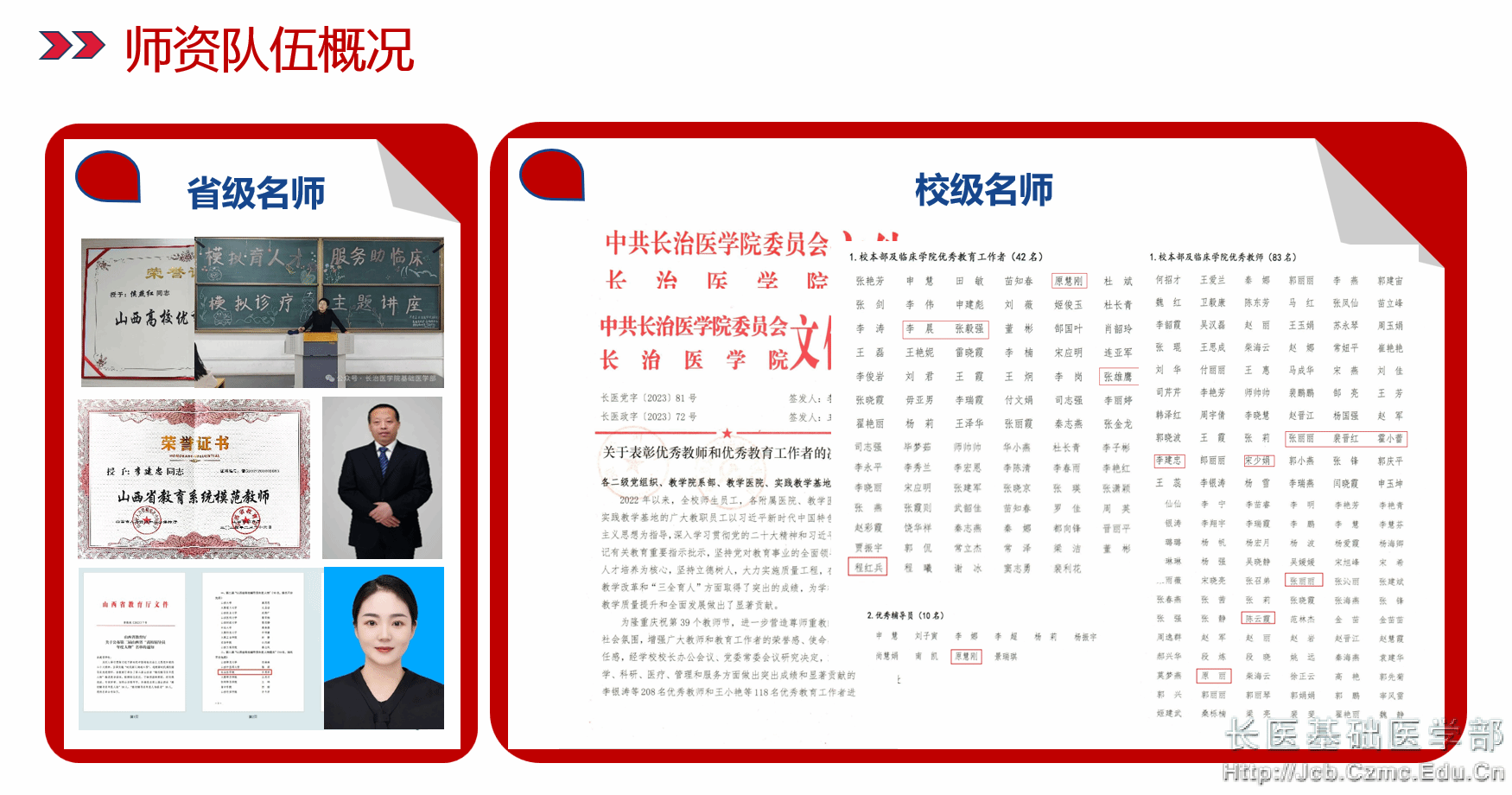 太阳成集团tyc234cc发挥党组织核心作用,全面贯彻党的教育方针,落实立德树人根本任务,加强师德师风建设,拥有一支专业知识扎实、梯队结构合理、素质优良的团队队伍。现有教职工123人,其中专任教师97人,实验技术人员20人,行政管理人员13人(兼职7人);教授15人,副教授41人,高级实验师3人;博士47人,硕士61人(博士在读3人);硕士生导师47人。拥有山西省教学名师1名,山西省“三八红旗手”1名,山西省模范教师1名,山西省优秀共产党员1名,山西省优秀辅导员1名,国家级社会实践先进教师1名,山西省社会实践先进教师2名;校级教学名师1名,校级优秀教学团队1个;多名教师在山西省中青年教师教学基本功竞赛中分别获二、三等奖,其中4名教师荣立省级二等功;3名教师获山西课程思政教学二等奖。