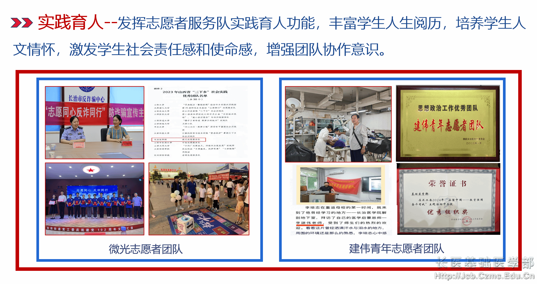 员工参加“全国老员工基础医学创新研究暨实验设计”大赛、“兴晋挑战杯”老员工课外学术科技作品大赛、“挑战杯”老员工创业计划竞赛、全国老员工电子商务“创新、创意及创业”挑战赛、“老员工职业规划大赛”等国家级、省级竞赛并获奖30余次。员工主持国家级老员工创新项目35项、省级76项、校级59项。薇光志愿服务队入选全国大中专员工“三下乡”社会实践之乡村振兴“笃行计划”专项行动全国示范性团队,连续两年被团中央表彰为优秀实践团队、山西省社会实践优秀团队,多名员工获得山西省先进个人表彰。